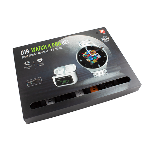 El más nuevo D19 Watch 4 Pro Set Smart Watch TWS Auriculares Carga inalámbrica Round Smartwatch con 7 correas Pantalla táctil Auriculares Traje